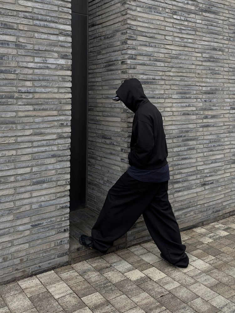 -맥시한 기장감의 와이드 배기핏으로 밑단 끌림 최소화